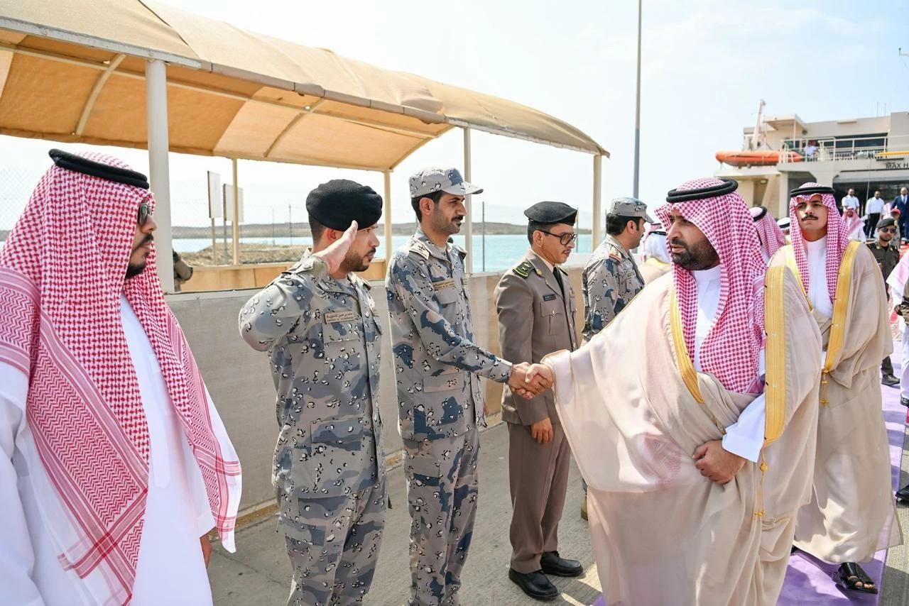 The Emir of Jazan had arrived earlier today at the Farasan Islands Governorate to sponsor the events of "Hareed Nights (22)," where he was welcomed at the Farasan port by the Governor of Farasan Islands, Abdullah bin Mohammed Al-Dhafri, the sheikhs of Farasan, and a number of officials in the region.