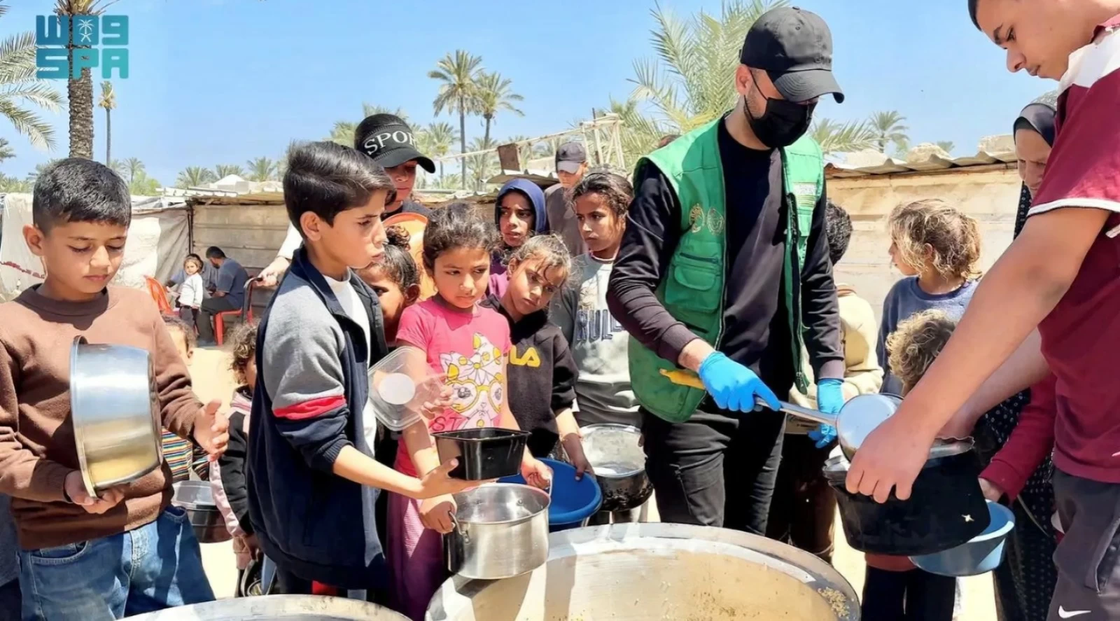 The central kitchen affiliated with the King Salman Humanitarian Aid and Relief Center distributed 24,500 hot meals to the most needy groups in the central and southern Gaza Strip, benefiting 24,500 individuals, as part of the Saudi popular campaign to aid the brotherly Palestinian people in the region.
