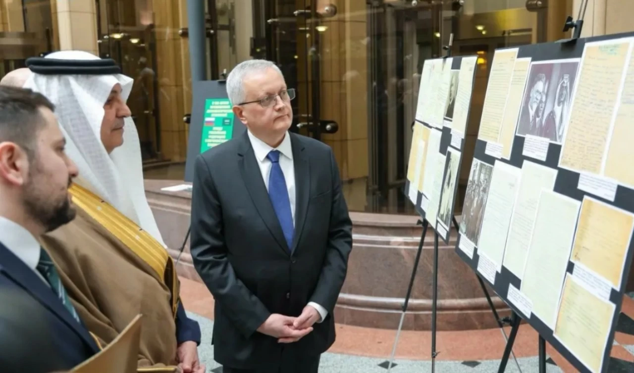 The Ministry of Foreign Affairs of the Russian Federation, in cooperation with the King Abdulaziz Foundation, held a historical photo exhibition in the capital, Moscow, today, to commemorate the 100th anniversary of the establishment of diplomatic relations between the Kingdom of Saudi Arabia and the Russian Federation, with the participation of the Deputy Minister of Foreign Affairs of the Russian Federation, Georgy Borisenkov, and the Ambassador of the Custodian of the Two Holy Mosques to the Russian Federation, Ambassador Sami bin Mohammed Al-Sadhan.