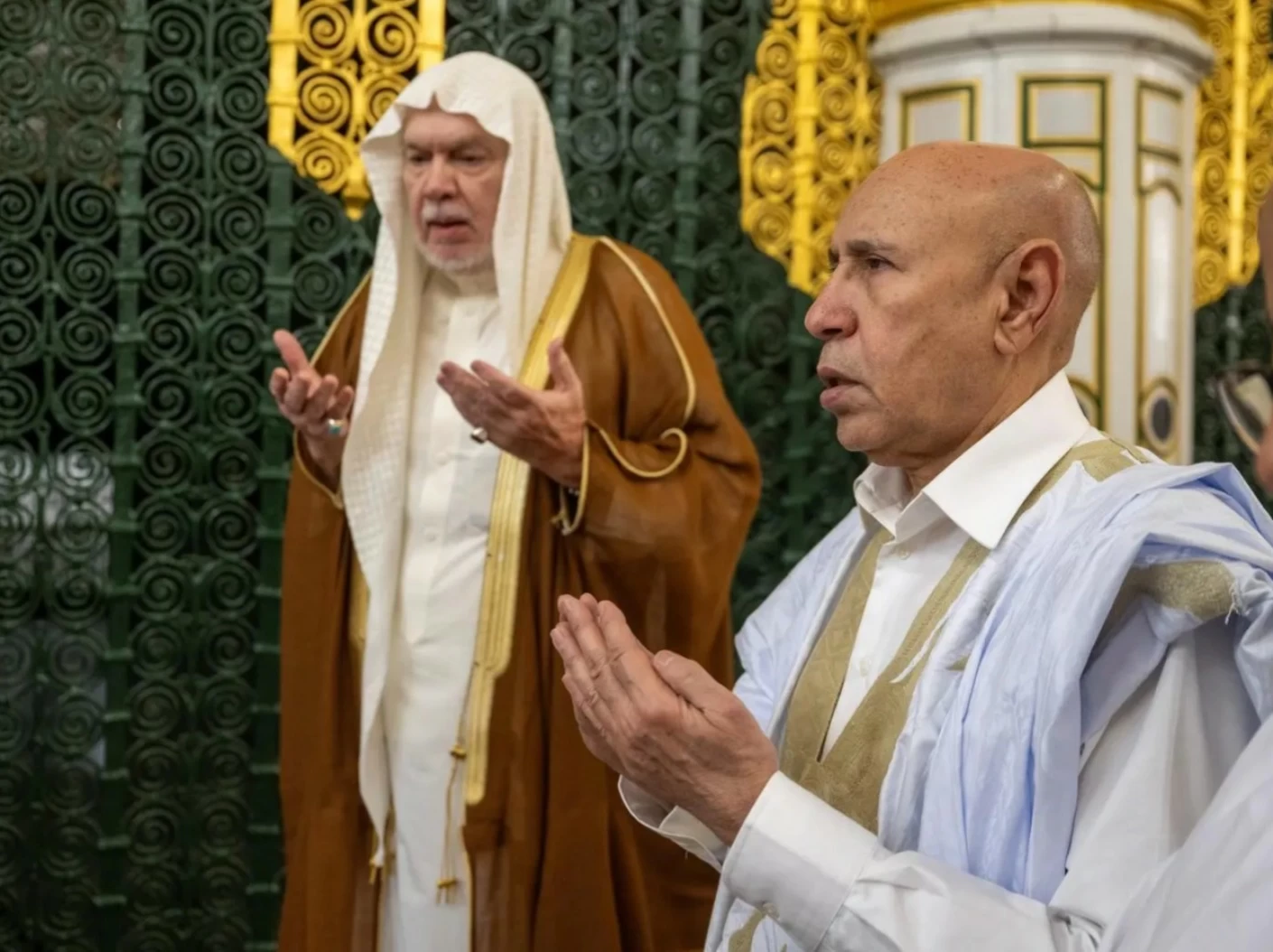 The President of the Islamic Republic of Mauritania, Mohamed Ould Cheikh El Ghazouani, along with his accompanying delegation, visited the Prophet's Mosque today, performed prayers there, and had the honor of greeting the Prophet Muhammad - peace be upon him - and his two companions, may Allah be pleased with them.
