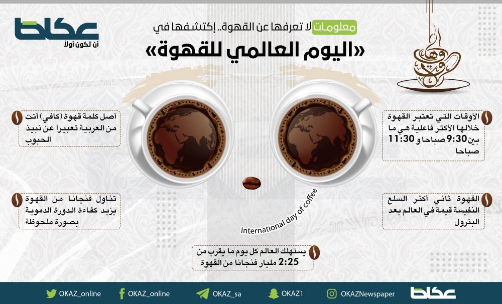 معلومات لا تعرفها عن القهوة.. اكتشفها في «اليوم العالمي للقهوة» 1 أكتوبر 2023 - 14:14 | آخر تحديث 1 أكتوبر 2023 - 14:14