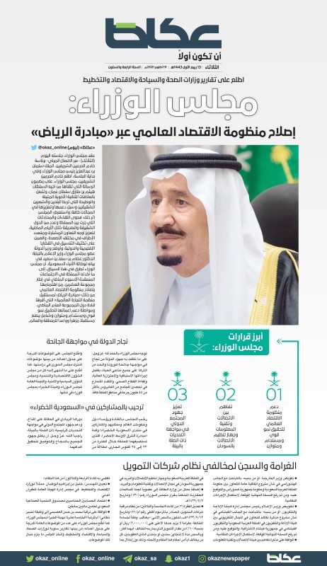 تطرق مجلس الوزراء في الجلسة التي عقدت اليوم (الثلاثاء) -عبر الاتصال المرئي- برئاسة خادم الحرمين الشريفين، الملك سلمان بن عبدالعزيز رئيس مجلس الوزراء، إلى ما أكدته المملكة في الاجتماعات المنعقدة الأسبوع الماضي في إطار مجموعة العشرين، من اهتمامها بإصلاح منظومة الاقتصاد العالمي من خلال «مبادرة الرياض لمستقبل منظمة التجارة العالمية» التي أقرها قادة دول المجموعة العام الماضي، ومواصلة دعم أعمالها لتحقيق نمو قوي ومستدام ومتوازن وشامل يصنع مستقبلاً مزهراً وواعداً للمنطقة والعالم.
