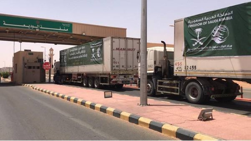 كما عبرت منفذ الوديعة الحدودي 13 شاحنة إغاثية في الفترة من 14 ديسمبر 2019 إلى 17 ديسمبر2019 تحمل 26.633 كرتوناً من التمور تزن 213 طناً و64 كيلوغراماً، و150 سلة غذائية تزن 11 طناً و100 كيلوغرام، و43 طناً و800 كيلوغرام من المواد الإيوائية تحتوي على 365 خيمة، تستهدف محافظات «مأرب، الضالع، عدن، سيئون، الحزم» بالجمهورية اليمنية.