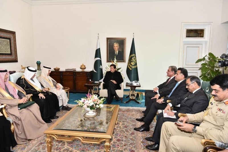 ونقل وزير الخارجية خلال الاستقبال تحيات خادم الحرمين الشريفين الملك سلمان بن عبدالعزيز آل سعود، وولي العهد نائب رئيس مجلس الوزراء وزير الدفاع الأمير محمد بن سلمان بن عبدالعزيز آل سعود، لدولة رئيس الوزراء الباكستاني.
