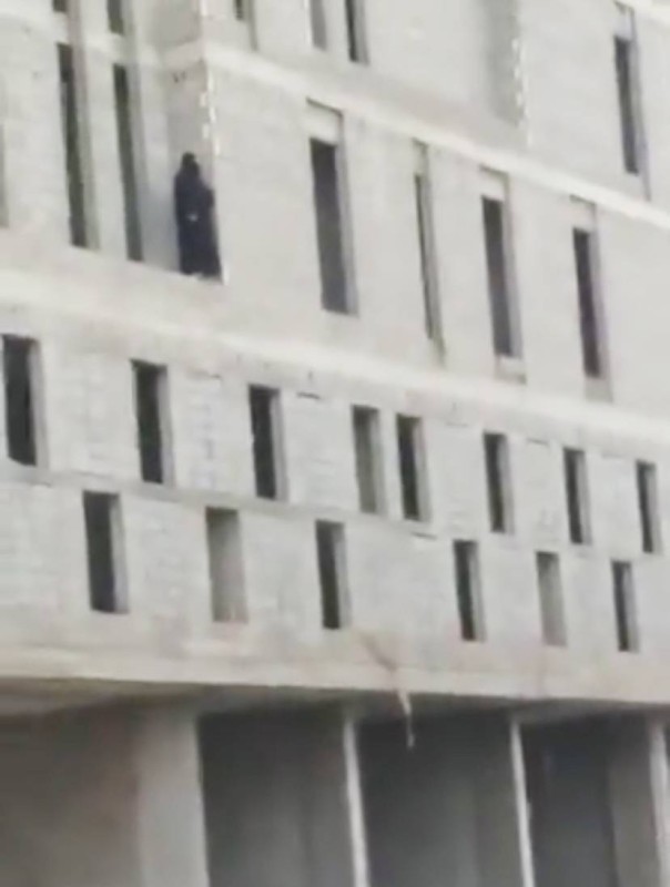 الفتاة أثناء محاولتها الانتحار. (متداولة)