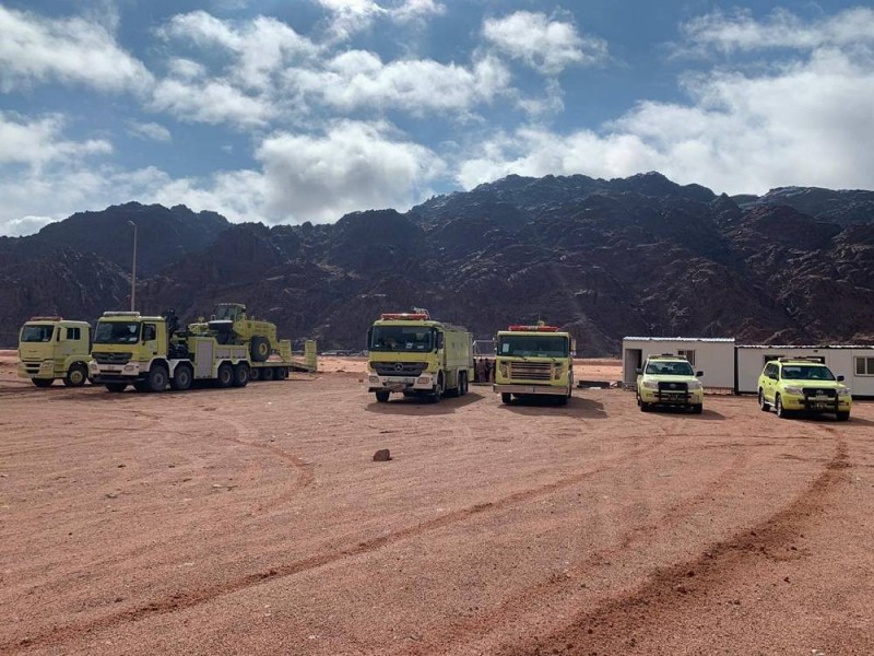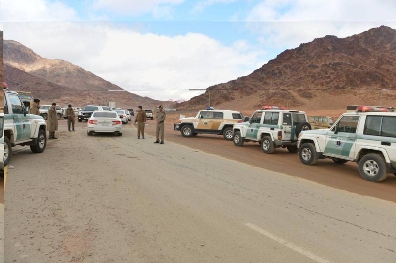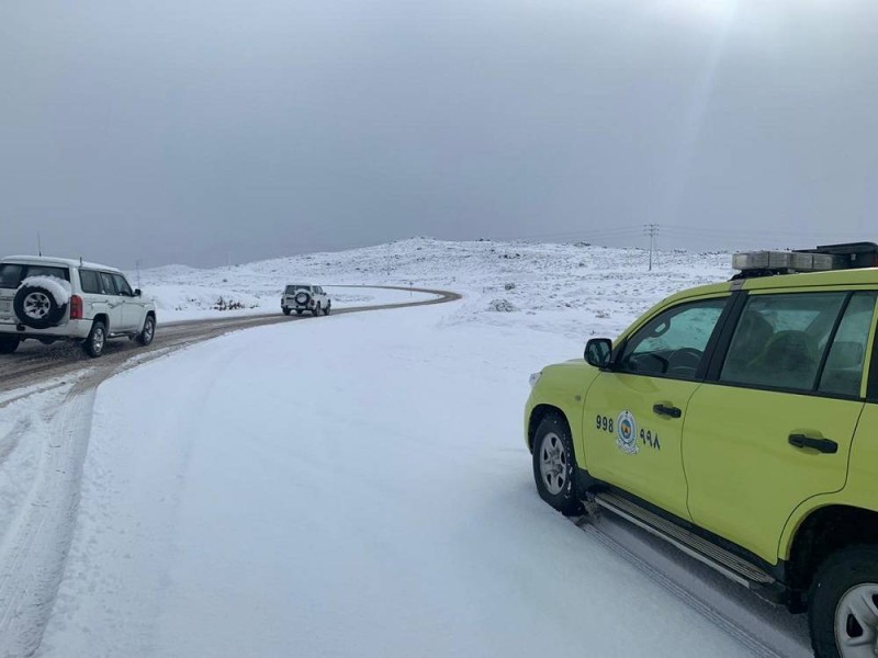 وبمتابعة من أمير منطقة تبوك فهد بن سلطان رئيس لجنة الدفاع المدني الرئيسية بالمنطقة، تنفذ الجهات الأمنية (الشرطة والمرور والدفاع المدني) وكذلك الهلال الأحمر والصحة الخطط الخاصة بكل جهاز بالوجود وتقديم أعمالها في المناطق التي شهدت تساقط الثلوج في المنطقة (جبل اللوز والظهر والزيتة ومركز علقان).