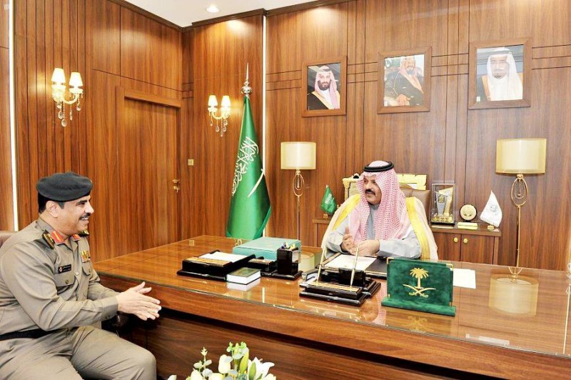 الأمير عبدالعزيز بن سعد مستقبلاً اللواء الدكتور العتيبي.