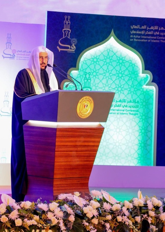وشدد في كلمته خلال ترؤسه وفد المملكة في مؤتمر الأزهر العالمي لتجديد الفكر الإسلامي أمس (الإثنين) على أن «تجديد الخطاب الديني ليس كما يفهمه من يفهمه من المنغلقين بأنه تغير للشرع أو هجوم على الثوابت أو تحريف للكلام عن مواضعه، وإنما هو إعمال للشرع وتدبر للخطاب، وبيان لكون القرآن خوطب به آخر الأمة كما خوطب به أولها وفهم الخطاب في العصور المتأخرة على سنن فهم السابقين الأولين من المهاجرين والأنصار الذين اتبعوهم بإحسان، وتجديد الخطاب الديني المراد به تجديد فهم الخطاب الديني لأن الخطاب الديني لا يتغير لأنه كلام رب العالمين».