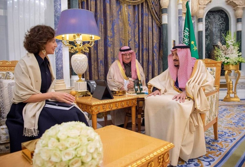 استقبل خادم الحرمين الشريفين الملك سلمان بن عبدالعزيز آل سعود، اليوم (الخميس)، المديرة العامة لمنظمة الأمم المتحدة للتربية والعلم والثقافة (اليونسكو) أودري أزولاي.