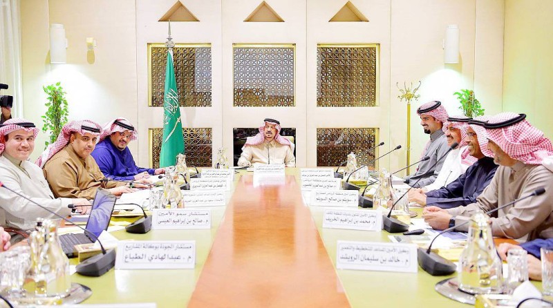 الأمير فيصل بن بندر مترئساً الاجتماع مع الأمانة.