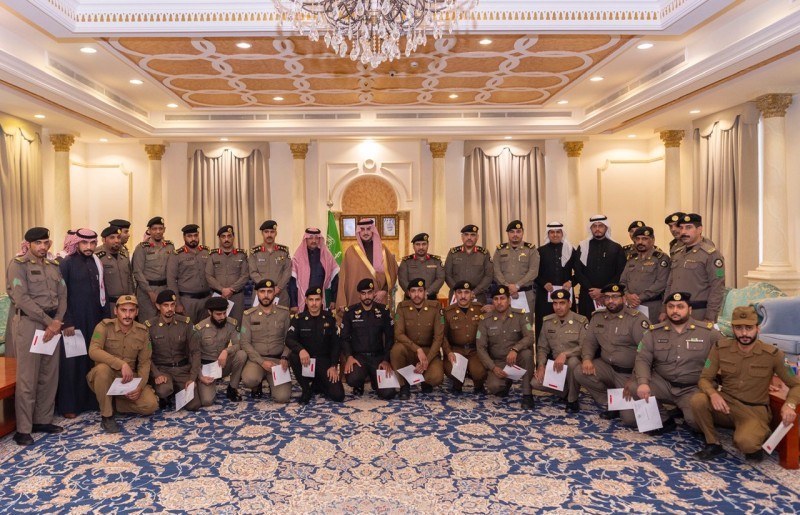 من جهة أخرى، كرم الأمير فيصل بن نواف بن عبدالعزيز بمكتبه بالإمارة أمس عددا من ضباط وأفراد الأمن العام، خلال استقبال مدير شرطة منطقة الجوف اللواء محمد بن مبارك الوذيناني.