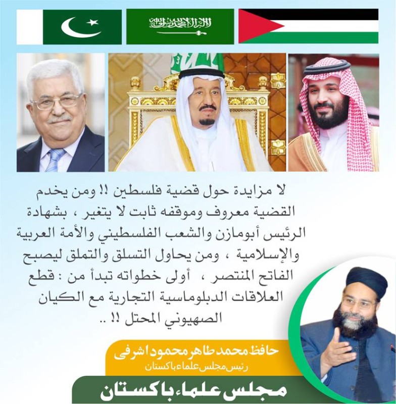 وأضاف: «إذا أنت صادق يا أردوغان لماذا لا تغلق سفارة إسرائيل في تركيا؟». وحذر مجلس علماء باكستان من يحاولون المساس بالحرم المكي الشريف والمسجد النبوي بأن الرد سيكون قاسيا عليهم، فالمسلمون سيدافعون عن قبلتهم دون تردد.