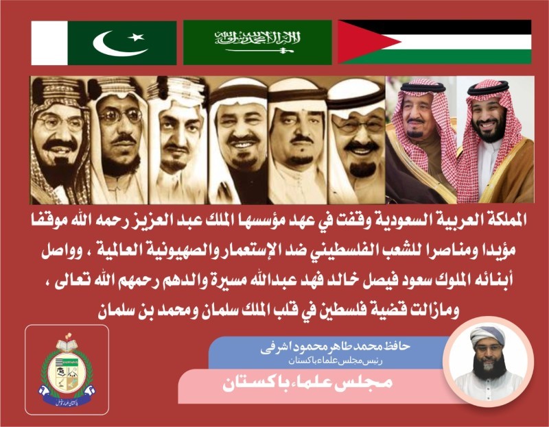 وشدد المجلس على أن السعودية هي الدولة التي تقف بجانب القضية الفلسطينية وتقف بكل حزم دون مصالح الشعب الفلسطيني، ومن يقلل من دور السعودية منافق وجاحد، والسعودية منذ عهد المؤسس تقف بجانب فلسطين، وأعلنتها القيادة السعودية في كل محفل، ومن يخدم القضية الفلسطينية موقفه ثابت بالأفعال وليس بالشعارات.