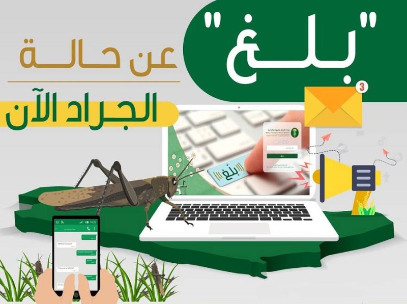 أطلقت وزارة البيئة والمياه والزراعة، نظاما إلكترونيا يُمكّن المواطنين من المشاركة في القضاء على الجراد، وذلك بتسجيل بلاغاتهم عبر تطبيق الوزارة لنظام البلاغات الموحّد (بلّغ)، أو عبر خدمة الواتساب من خلال الرقم (0530233560).