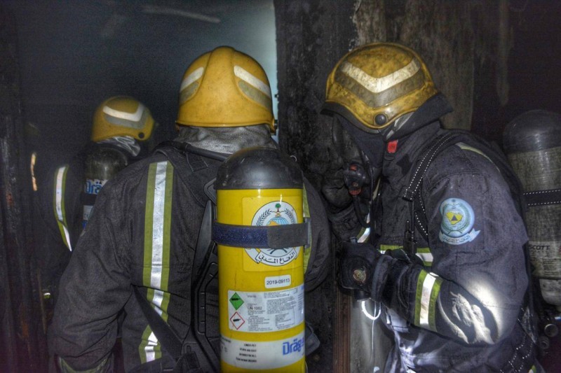 وتابع: «تم إخلاء 3 نساء وطفلين وإخماد الحريق الذي نتج عنه تعرض امرأتين من جنسية عربية في العقدين الرابع والسابع لضيق تنفس بسيط، وعولجن من قِبل الهلال الأحمر في الموقع».