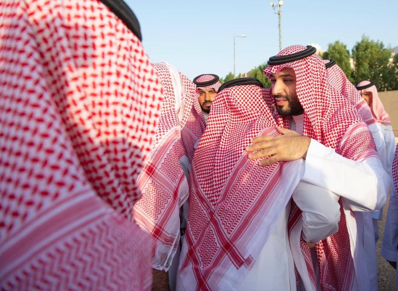 ولدى وصول خادم الحرمين الشريفين، كان في استقباله المستشار الخاص لخادم الحرمين الشريفين، الأمير عبدالإله بن عبدالعزيز آل سعود، والأمير مقرن بن عبدالعزيز آل سعود، وأمير منطقة الرياض فيصل بن بندر بن عبدالعزيز، وولي العهد نائب رئيس مجلس الوزراء وزير الدفاع الأمير محمد بن سلمان بن عبدالعزيز.