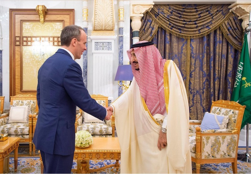استقبل خادم الحرمين الشريفين الملك سلمان بن عبدالعزيز اليوم (الخميس)، وزير خارجية بريطانيا دومينيك راب.