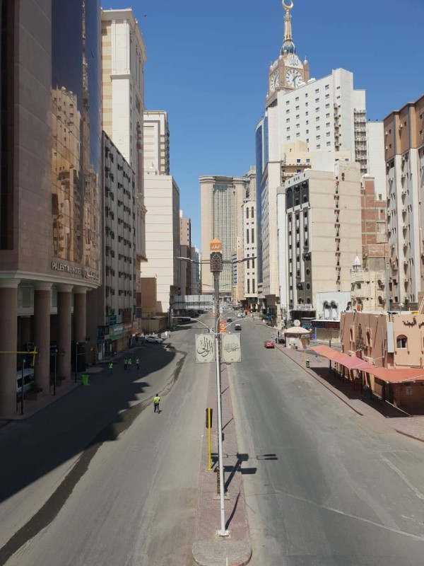 خلت الشوارع المحيطة بالحرم المكي الشريف ظهر اليوم (الجمعة) من المارة والمصلين، وذلك بعد أن صدرت التوجيهات بإيقاف صلاة الجمعة في الحرم المكي الشريف والمناطق المحيطة.