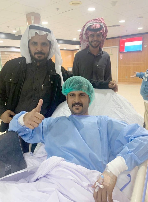 المتبرع مبطي محاطاً بأصدقائه بعد إجراء العملية.