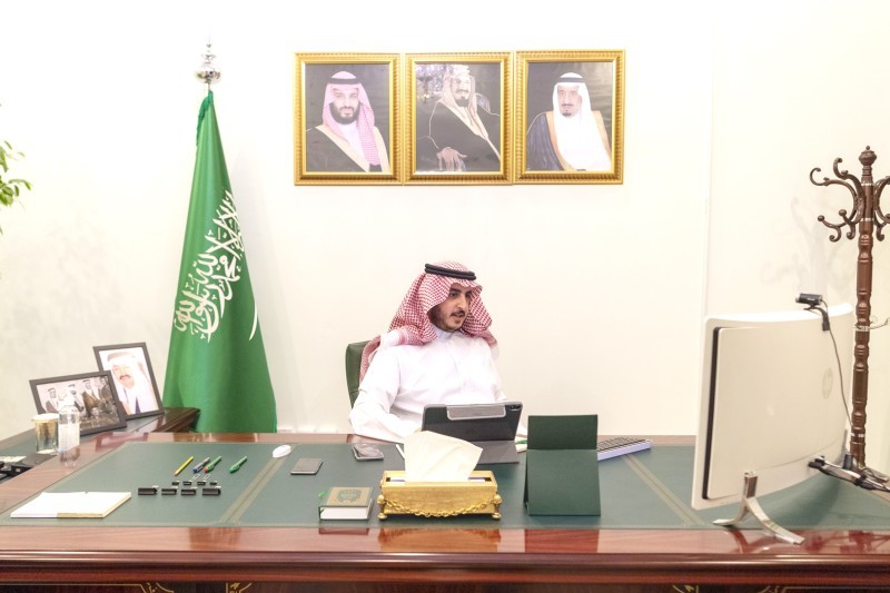 أمير الجوف خلال الاجتماع بالاتصال المرئي.
