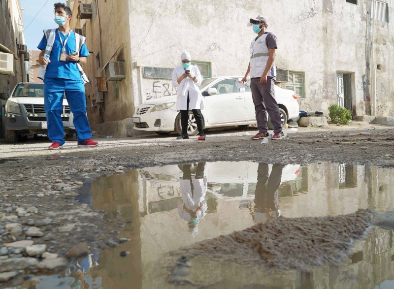 وفي السياق نفسه، تنفذ مديرية الشؤون الصحية في محافظة جدة خطة وقائية وعلاجية كبيرة ساعدت في ضبط الوضع الصحي للعمالة داخل المجمعات السكنية، وساهمت في كشف مخابئ لهم توارت عن الأنظار. ويأتي هذا المجهود الكبير من الصحة خوفا عليهم من الإصابة بفايروس كورونا الجديد (كوفيد 19)، إذ حثت العمالة على الالتزام بها وحرصت على تنفيذها بالشراكة مع أمانة محافظة جدة، والكشف الطبي وعلاجهم إذا وجدت الإصابات. وتقوم فرق ميدانية طبية، بمشاركة عدد كبير من المتطوعين، بالتجول داخل الأحياء العشوائية، وتقديم التوعية والتثقيف ضد فايروس كورونا في المجمعات السكنية وداخل المنازل وفي مواقع تجمع المواطنين أو المقيمين.