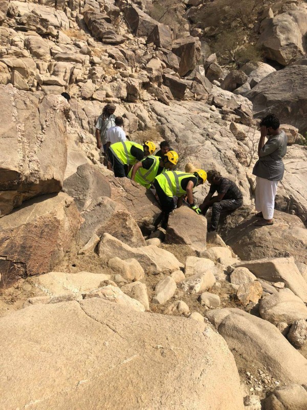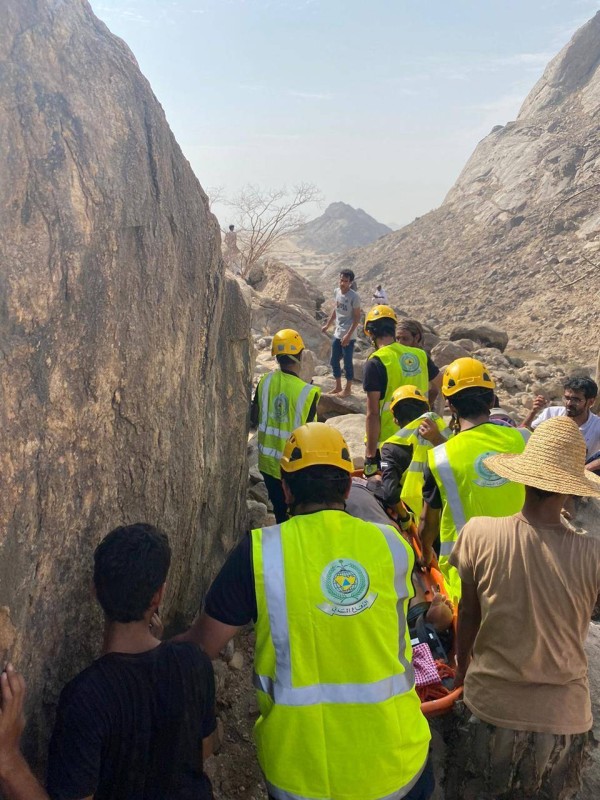 وأكد المتحدث باسم الدفاع المدني في المنطقة العقيد جمعان دايس أنه فور تلقي البلاغ تحركت فرق الإنقاذ الجبلي من الحجرة ومركز الجرين، وقطع أفرادها كيلومترين سيرا على الأقدام حتى وصلوا إلى المصاب الذي طالته رضوض في الوجه واليد مع إعياء شديد، ثم حملوه بواسطة النقالة والحبال عبر منحدر جبلي وعر لمقر الآليات والهلال الأحمر، وتم تقديم الإسعافات الأولية ونقله إلى مستشفى الحجرة، وتسليم الحالة لشرطة محافظة الحجرة لإكمال إجراءات الحادثة.