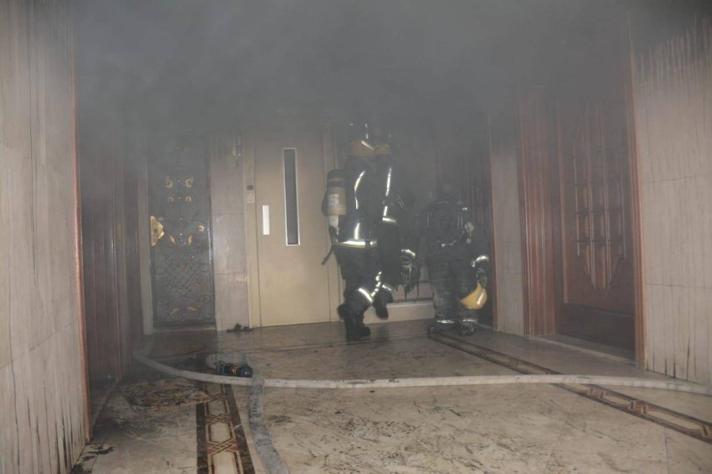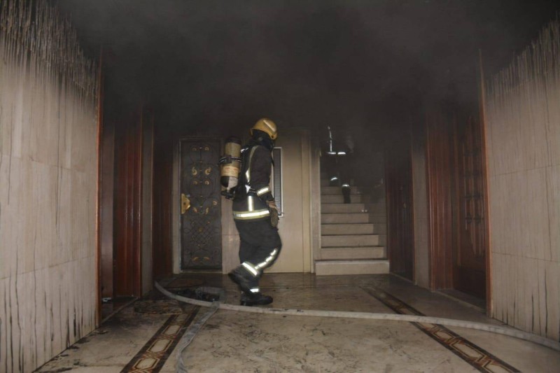 وأضاف: «جرى تحريك الفرق اللازمة وسيارات السلالم والمعدات المساندة، وبوصولها للموقع اتضح أن الحالة عبارة عن حريق بشقة بالدور الأرضي بعمارة مكونة من ثلاثة أدوار ووجود حالات محتجزة خلف ألسنة اللهب وأعمدة الدخان، وتم اقتحام الموقع من قِبل فرق الإطفاء والإنقاذ وإخلاء ٣٠ شخصاً بواسطة سيارة السلالم والسلالم الداخلية للمبنى، وإخماد الحريق دون انتشاره لباقي الموقع».