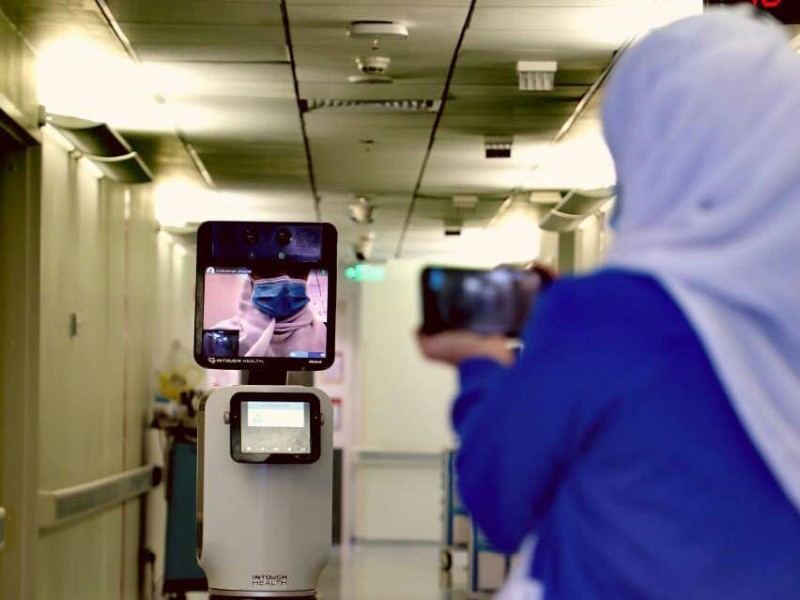 حيث تساهم تقنية الروبوت في الحد من انتشار العدوى بين الطاقم الطبي والتمريضي والمرضى، والتقليل من استهلاك المستلزمات الطبية الوقائية. ويتميز الروبوت بإمكانياته المدمجة مثل السماعة الطبية، والكاميرات الخاصة بفحص الأذن والعين ذات خاصية التقريب، والكاميرا الخاصة بفحص الجلد عن بعد عن طريق كاميرا مدمجة ذات دقة عالية، إضافة إلى الأدوات التي تمكّن الكادر الطبي والتمريضي من تشخيص حالات المرضى المصابين بكوفيد 19، وتقديم الاستشارات الطبية لهم، وقراءة العلامات والمؤشرات الحيوية، بما في ذلك الصور الإشعاعية، والاطلاع على ملف المريض كاملاً بواسطة استخدام تطبيق على الهواتف الذكية للتحكم عن بعد من أي موقع مباشرة.