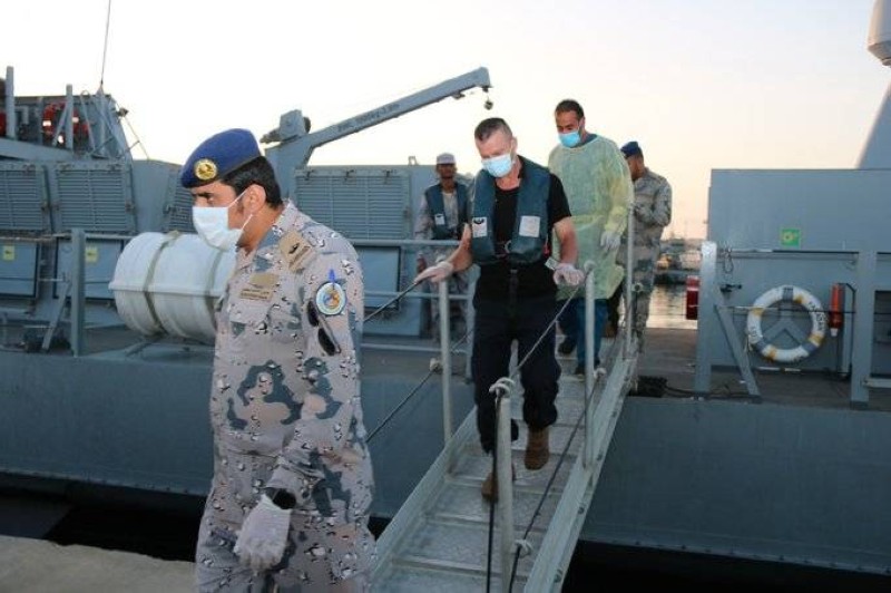 وأوضح المتحدث باسم حرس الحدود المقدم مسفر القريني، أن مركز تنسيق البحث والإنقاذ بجدة ( JMRCC ) تلقى اتصالاً من الشركة المُشغلة للسفينة ( MV Sterling Palm)، حاملة علم جمهورية منغوليا، يفيد بوجود حالة مرضية لأحد طاقمها، بحار أوكراني يبلغ من العمر 35 عاماً، يعاني من مشكلات صحية بالكلى، وليس لديه أية أعراض أو اشتباه بالإصابة بفايروس كورونا المستجد، ويحتاج إلى إخلاء طبي.وأضاف: «على الفور، تولى مركز تنسيق البحث والإنقاذ بجدة JMRCC إدارة الحدث، وتحديد موقع السفينة، يقع على بعد (88) ميلاً بحرياً، شمال غرب جزيرة فرسان، ومن خلال التنسيق لتطبيق بنود الخطة الوطنية لمواجهة الكوارث البحرية في مياه المملكة العربية السعودية المعمول بها في مثل هذه الحالات، تم التواصل من قبل مركز التنسيق مع كابتن السفينة، وتحديد نقطة التقاء، وإبلاغه التوجه إليها، واتخذت الإجراءات الاحترازية بشأن فايروس كورونا المستجد».