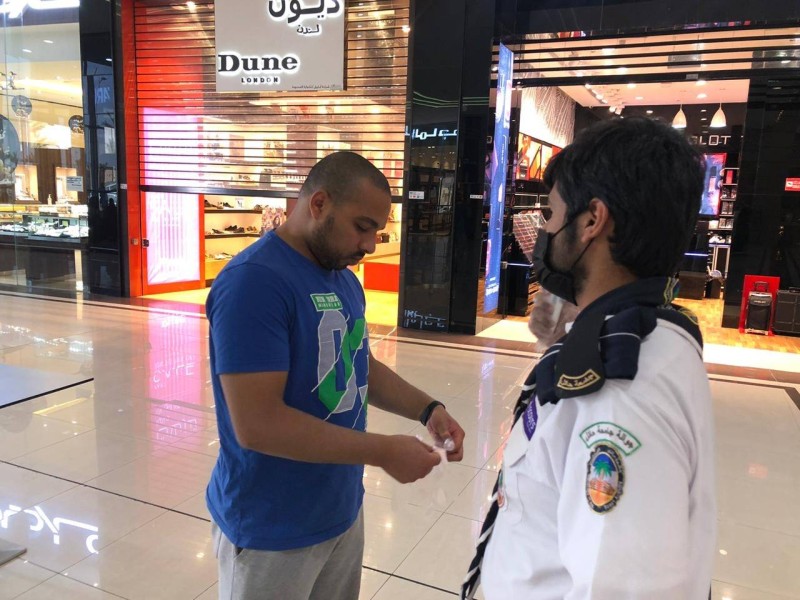 كما تمت إزالة كافة الكراسي وأماكن الجلوس في الممرات، وتوفير كمامات وقفازات للزوار بشكل كاف عند المداخل، مع تواجد أفراد أمن منشآت المولات عند المداخل للتأكد من التزام المرتادين بارتداء الكمامات.
