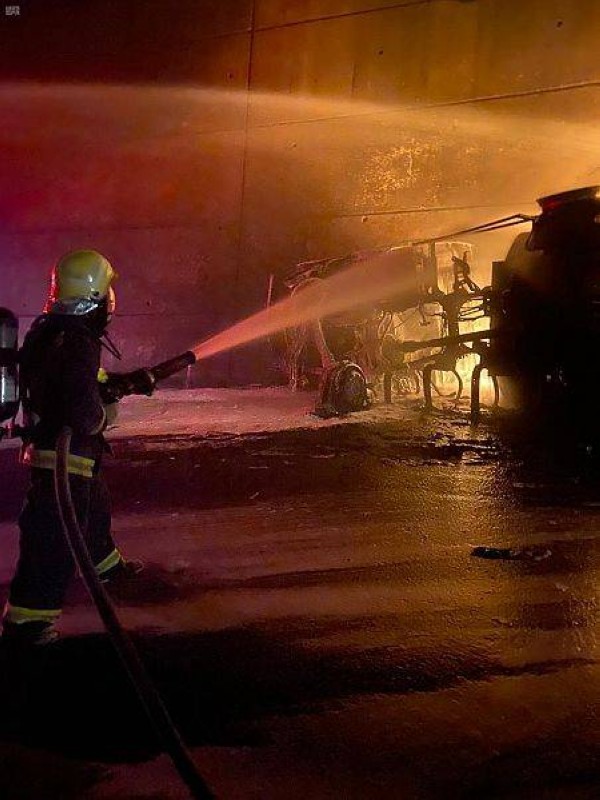 وأوضح المتحدث باسم الدفاع المدني بمنطقة عسير النقيب محمد بن عبده السيد أن الحريق كان نتيجة انقلاب الناقلة، وأُخمدت النيران، ونتج عن ذلك إصابة السائق (باكستاني الجنسية) بحروق من الدرجة الثانية، وحالته الصحية مستقرة.