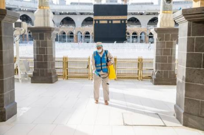 3500 عامل يؤدون مهام تطهير وتعقيم المسجد الحرام ومرافقه على مدار اليوم.
