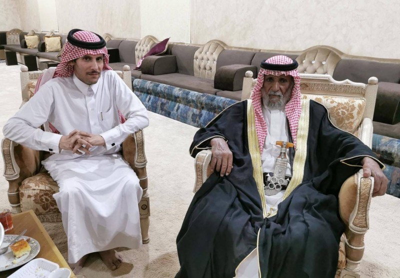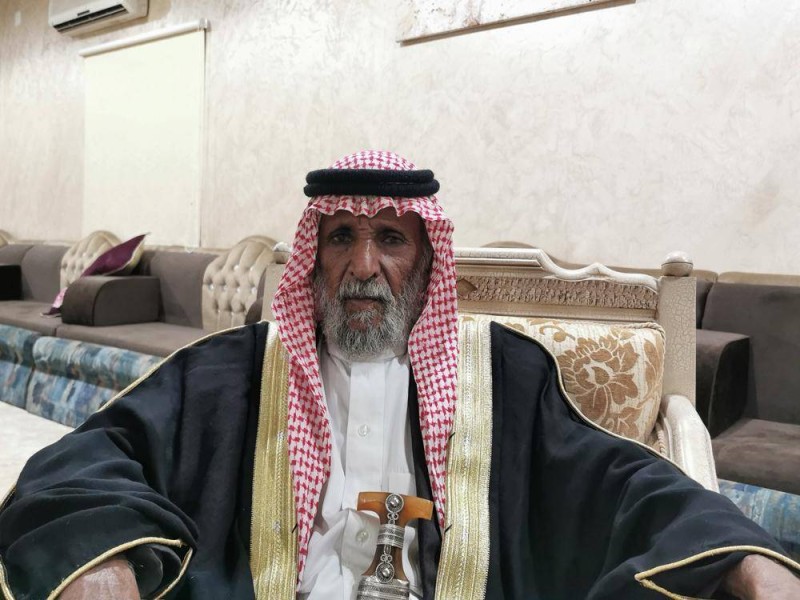 إنه الشاعر عايض بن درهم الذي استضاف «عكاظ» في منزله بمركز صمخ جنوبي بيشة، كاشفاً سر خلوه وسلامته من الأمراض رغم تجاوز عمره المائة عاماً، مشيراً إلى أن السر في ذلك هو عدم تناوله اللحوم الحمراء والألبان، وعدم الأكل أو الطلب من المطاعم طوال حياته، واعتماده في غذائه على خبز البر والشعير.
