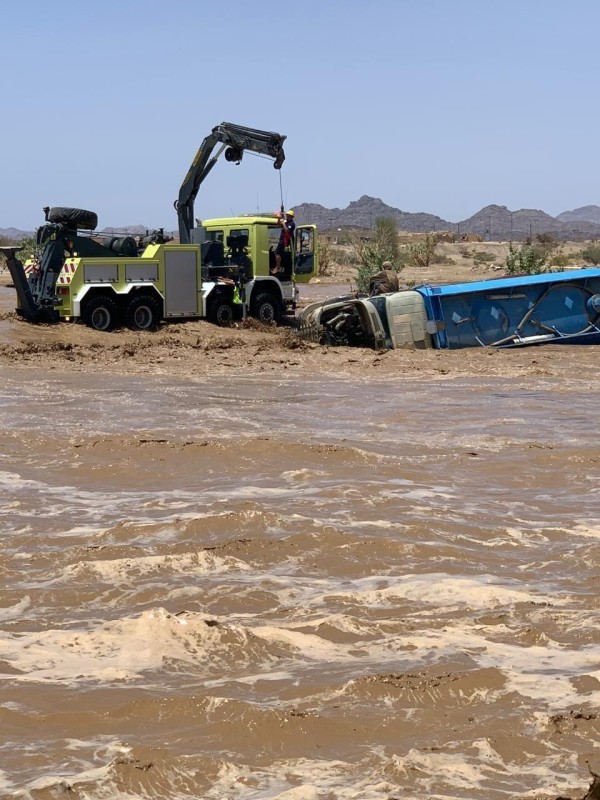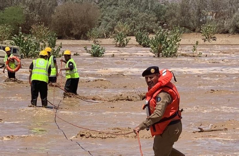 تسببت السيول المنقولة مع وادي تثليث صباح اليوم (الثلاثاء) في جرف عدد من المركبات، وتمكن الدفاع المدني من إنقاذ 3 أشخاص جرفت السيول مركباتهم.