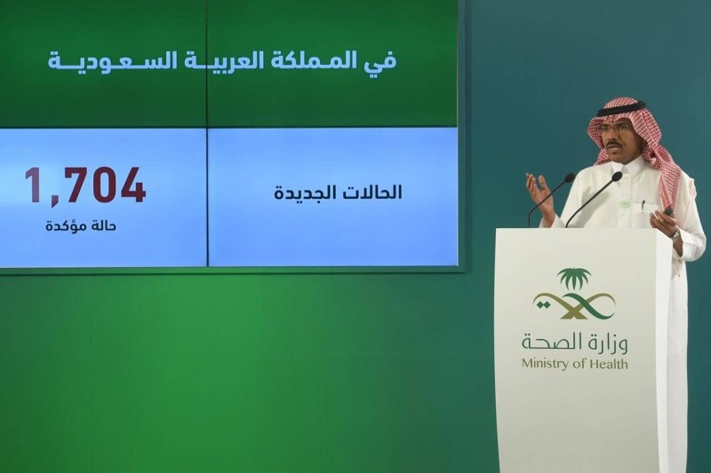 أعلن مساعد وزير الصحة المتحدث باسم الوزارة الدكتور محمد العبدالعالي، اليوم (السبت)، تسجيل 1704 إصابات جديدة بفايروس كورونا المستجد (كوفيد-19) في المملكة، فيما تم تسجيل 10 حالات وفاة جديدة، وتسجيل 1024 حالة تعافٍ إضافية.