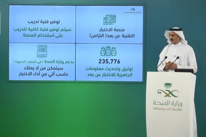 وكشف الغبيشي أنه جرى توثيق وتحديث المعلومات للاختبار «عن بعد» لـ ٢٣٥ ألف طالب وطالبة خلال اليومين الماضيين، مبيناً أن الطالب الذي لا يملك حاسبا آليا سيتمكن من أداء الاختبار في المقرات المجهزة وفق دعم وزارة الصحة، وبتطبيق اشتراطاتها وبروتوكولاتها للحفاظ على سلامة الطلاب.