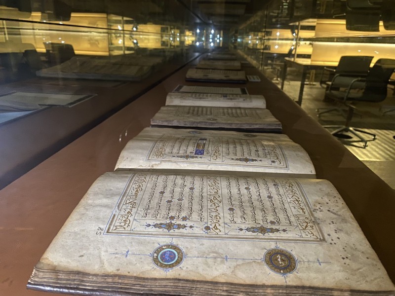 ومن بين المخطوطات النادرة والثمينة التي تقتنيها المكتبة، مصحف شريف كتب بالخط الكوفي من القرن الثالث الهجري وكتب على الجلد، وآخر كُتب بخط النسخ المجود تشير التقديرات إلى أنه يعود إلى القرن العاشر، إضافة إلى مؤلفات ووثائق نفيسة ضاربة في عمق التاريخ.
