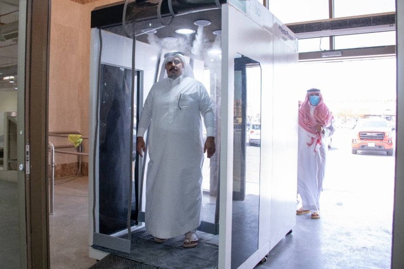 وأشار إلى أن الجهاز المستخدم هو من ضمن 5 أجهزة سيتم وضعها في أسواق النفع العام حماية للباعة والمتسوقين كافة عند المداخل الرئيسية، لافتا إلى أن هذه الوحدة تم وضعها في بوابة سوق الخضار المركزي بالدمام؛ حفاظا على سلامة الباعة والمتسوقين، كما أن جميع أنظمتها الداخلية تعمل بصفة إلكترونية وتلقائيا ودون لمس، مثل جهاز قياس الحرارة، وجهاز تعقيم اليدين، والتعقيم الشامل، ونظام تبخير بتقنية الضباب لزيادة كفاءة التعقيم والسلامة مقارنة بالرذاذ العادي، منوها إلى أن المواد المستخدمة للتعقيم عضوية نباتية وآمنة على الأشخاص وعلى المواد الغذائية، كما يتضمن الجهاز كاميرا استشعار أمامية وظيفتها قياس درجة حرارة المتسوق، وبإمكان هذه الوحدة تعقيم 200 شخص في الساعة.