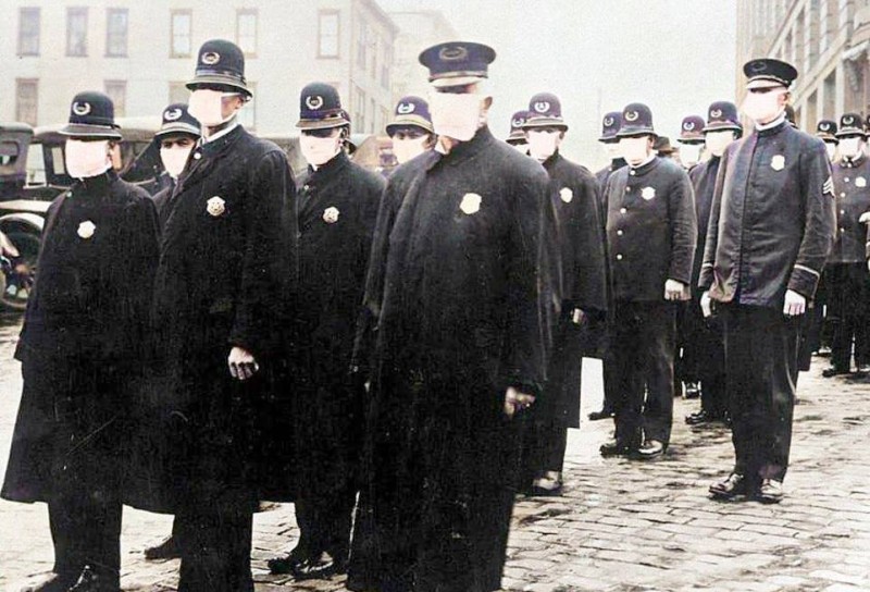 ومثلما بطش كوفيد-19 بالناس، فإن الإنفلونزا الإسبانية لم تستثنِ أحداً. فقد أصيب بها الرئيس الأمريكي آنذاك وودرو ويلسون، وملك إسبانيا الفونسو الثالث عشر، وملكة الدنمارك الإكسندرينا، والعاهل الإثيوبي الإمبراطور هيلاسيلاسي، وإمبراطور ألمانيا فيلهيلم الثاني، ورئيس وزراء بريطانيا آنذاك ديفيد لويد جورج. وكان فايروس الإنفلونزا الإسبانية فتاكاً جداً، إلى درجة أن أقصى فترة يتسبب فيها بالوفاة هي يومان بعد الإصابة. وفي أمريكا، قيل إن الناس كانوا يذهبون صباحاً بالباصات الى أشغالهم، ولا يعودون مطلقاً. وتتشابه الجائحتان في أنه تسبب في كلتيهما فايروس تنفسي، قفز من الحيوانات إلى الإنسان. ولم يكن أمام الطب في الحالتين سوى النصح بالغسل المتكرر لليدين، وارتداء قناع الوجه، والحرص على التباعد الجسدي. ويمتد التطابق ليشمل النصائح التي تقدمها وزارات الصحة في العالم حالياً: إذا دهمتك الأعراض فابقَ في بيتك. الزم سريرك. اشرب سوائل ساخنة. وابقَ على هدوئك إلى أن تمر الأعراض! وظهرت آنذاك أيضاً نصيحة بإبقاء النوافذ مفتوحة، لتحصل على أكبر قدر من الهواء النقي. غير أن ما لا يجمعها أن الإنفلونزا الإسبانية استهدفت بوجه الخصوص الأشخاص من سن 20 الى 40 عاماً. وأدى ذلك إلى وفاة عدد كبير من هذه الشريحة التي تأتي منها عادة جموع المجندين في القوات المسلحة للدول الكبرى. ويقول الأطباء إن المعركة بين الإنسان وفايروس الإنفلونزا الإسبانية كانت على الرئتين. وكانت تنتهي بنجاح الفايروس في تدمير الرئتين في نهاية المطاف. وأدى ذلك الوباء إلى وفاة 675 ألفاً في الولايات المتحدة وحدها. وفي سبتمبر 1918، قرر مدير الصحة بولاية فلادلفيا تجاهل توصيات مستشاريه، وسمح بمسيرة ضخمة للترويج لسندات الحرب، عرفت لاحقاً بـ «المسيرة القاتلة». أصيب معظم المشاركين فيها. وحدثت مشاهد موت مروعة. وفي نهاية 1918، ومطلع 1919، شهدت الولايات المتحدة موجة ثانية من الإنفلونزا الإسبانية. ونُكبت سان فرانسيسكو بمئات الوفيات.
