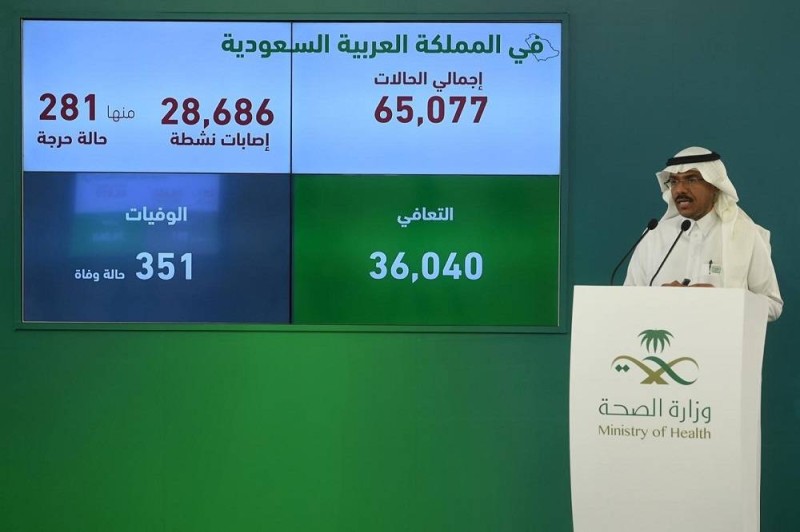 وقال العبدالعالي: إجمالي الحالات تراكميا منذ ظهور أول حالة في المملكة وحتى اليوم، وصل إلى 65.077 حالة، من بينها 28.686 حالة نشطة لاتزال تتلقى الرعاية الصحية اللازمة، وأوضاعهم الصحية مستقرة ومطمئنة، منها 281 حالة حرجة تتلقى الرعاية في العنايات المركزة المخصصة للتعامل مع حالاتهم الصحية.