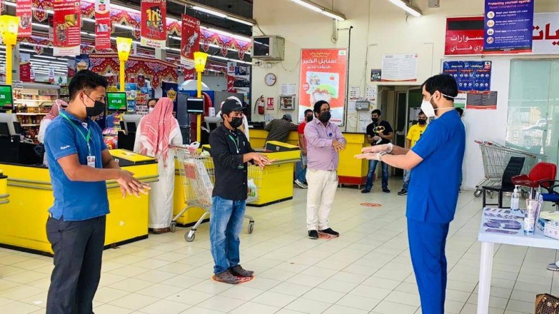 وقدمت الفرق الصحية مجموعة من الإرشادات والنصائح، تضمنت تعقيم عربات التسوق، وتوفير الكمامات والقفازات للمتسوقين عند مداخل مراكز التسوق، وترك مسافات آمنة بين المتسوقين لا تقل عن مترين، وكذلك قياس درجة الحرارة قبل الدخول، وتثقيفهم بالابتعاد عن التجمعات والأماكن المزدحمة وعدم الخروج إلا في حالات الضرورة القصوى، إضافة إلى توزيع المنشورات والمطويات على المواطنين والمقيمين، وتأتي هذه الحملات تماشياً مع توجيهات وتعليمات وزارة الصحة للوقاية من فايروس كورونا ومنع انتشاره.