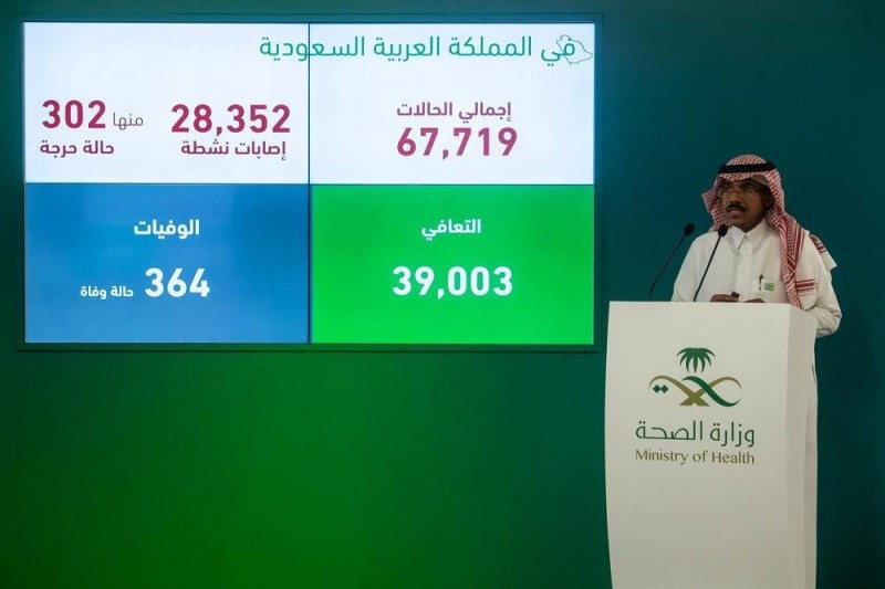وأضاف: وصل إجمالي عدد حالات الإصابة المؤكدة بالفايروس منذ أول ظهور له وحتى اليوم إلى 67.719 حالة، من بينها 28.352 حالة نشطة لاتزال تتلقى الرعاية الطبية المناسبة لها، وأوضاعها الصحية مطمئنة ومستقرة، فيما 302 حالة حرجة تتلقى الرعاية في أقسام العناية المركزة المخصصة للتعامل مع أوضاعهم الصحية.