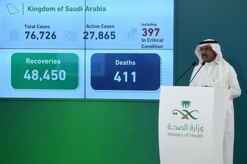 وتابع: إجمالي الحالات منذ أول ظهور للفايروس وتسجيل أول حالة في المملكة وحتى اليوم، بلغ 76.726 حالة، من بينها 27.865 حالة نشطة معظمها أوضاعها مستقرة ومطمئنة، منها 397 حالة حرجة تتلقى الرعاية في العنايات المركزة المناسبة والمخصصة لأوضاعهم الصحية.