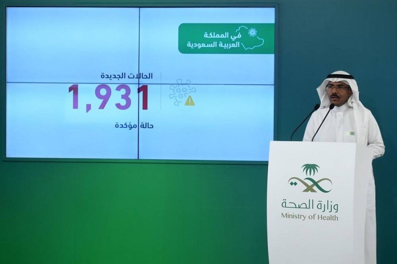 أعلن مساعد وزير الصحة المتحدث باسم الوزارة الدكتور محمد العبدالعالي، اليوم (الثلاثاء)، تسجيل 1931 إصابة جديدة بفايروس كورونا المستجد (كوفيد-19)، ليصل إجمالي حالات الإصابة المؤكدة تراكمياً منذ أول ظهور للفايروس في المملكة وحتى اليوم إلى 76.726 حالة، فيما تم تسجيل 12 حالة وفاة جديدة، ليصل إجمالي الوفيات إلى 411 حالة وفاة، فيما تم تسجيل 2782 حالة تعافٍ إضافية، ليرتفع إجمالي المتعافين إلى 48.450 متعافيا.