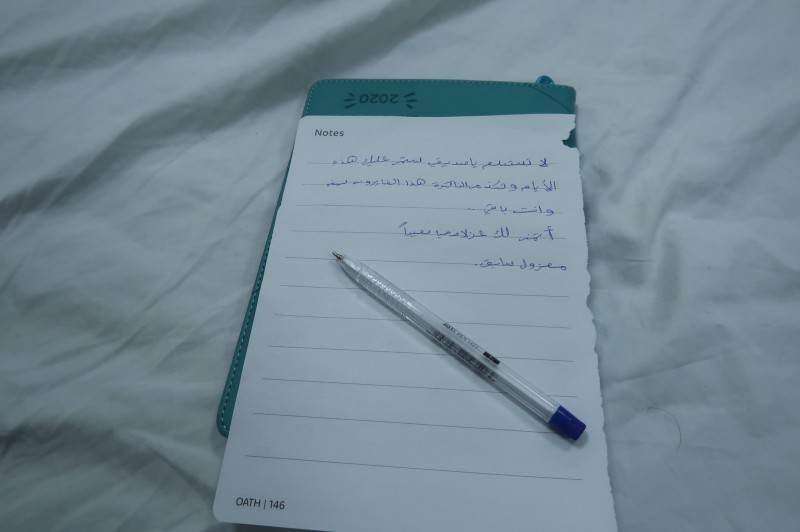 وقبل مغادرته غرفة العزل بالمستشفى، ترك حافظ رسالة كتبها بصفته «معزول سابق» إلى المعزول القادم الذي سيقيم في نفس المكان لمساعدته وتحفيزه، جاء فيها: «لا تستسلم يا صديقي، ستمر عليك هذه الأيام وتكون من الذاكرة، هذا الفايروس سيمضي وأنت باق، أتمنى لك عزلا صحياً سعيداً.. معزول سابق».