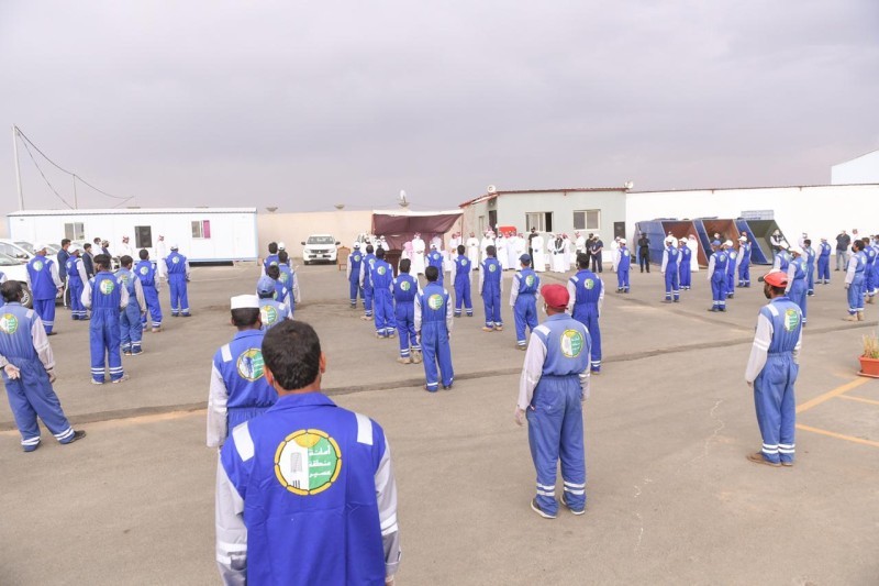 عمال النظافة خلال استقبالهم أمير عسير. (عكاظ)