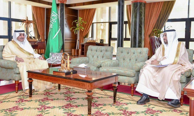 الأمير فهد بن سلطان خلال لقائه مدير عام الشؤون الصحية بالمنطقة. (عكاظ)