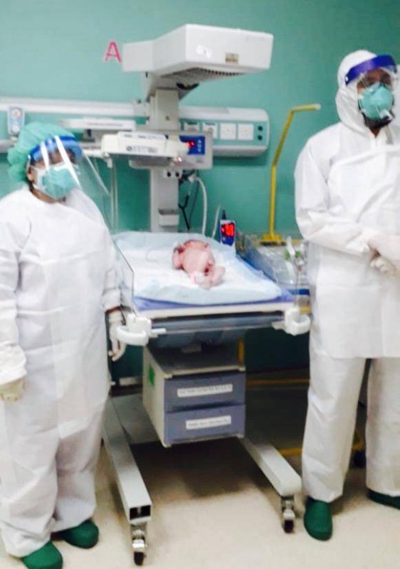 وتمت الولادة بشكل طبيعي وجرى إخضاع الطفل لعدد من الإجراءات الطبية، وذلك في خطوات احترازية لضمان سلامته، وهو بحالة صحية جيدة.
