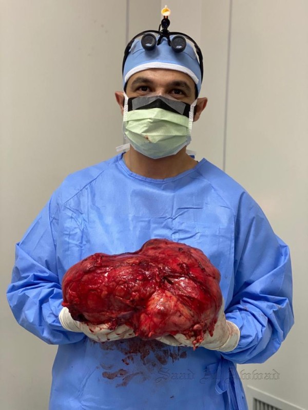 وبيّن الدكتور أن العملية تعتبر نادرة، إذ إن نسبة حدوث هذا الورم مريض لكل مليون شخص ولكن بهذا الحجم فتعتبر حالات فردية مسجلة على مستوى العالم.