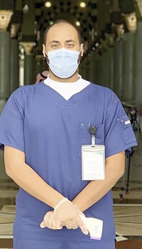 استعد الشاب عبدالله العلاوي، طالب الطب بالسنة الخامسة، للتطوع ميدانيا مع فرق وزارة الصحة بعدما ظل متخوفا وقلقا من العدوى له ولاسرته لكنه بعد تحفيز من والده قرر النزول إلى الميدان وبدأت رحلته في التطوع من المسح النشط في أحياء المدينة المنورة، ثم إلى المراكز التجارية لتوعية الزوار، وبعدها إلى المسجد النبوي الشريف لقياس درجة حرارة المصليين.